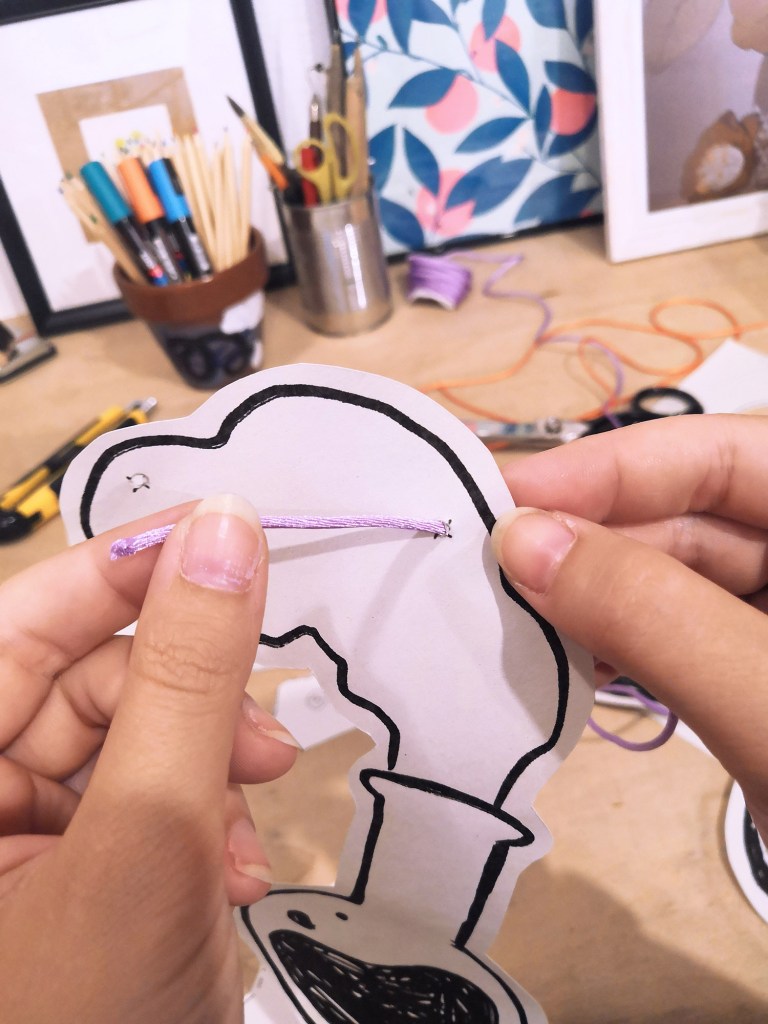 Ora fate passare il filo da un capo all’altro, infilate tutte le figure nell’ordine che preferite, e appendetele. Ora siete pronti per festeggiare Halloween!