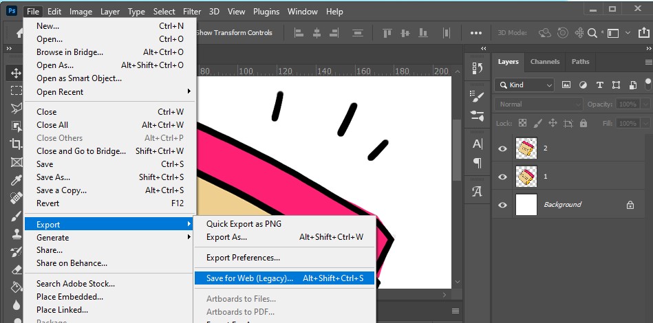 Quando sarete soddisfattə dell’animazione per salvare la tua GIF andate su “File”, seleziona “Export” e “Salva per il Web“.