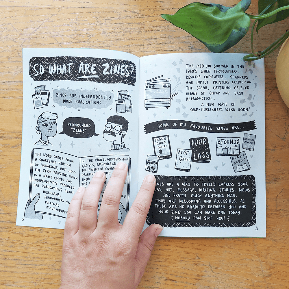Le fanzine sono quindi oggetti che chiunque può creare, utilizzando ogni mezzo e tecnica e soprattutto per parlare di qualsiasi cosa si voglia. Possono essere autobiografiche, raccogliere le illustrazioni di un artista, parlare dell’ultimo libro uscito, di botanica, architettura, letteralmente qualsiasi cosa.