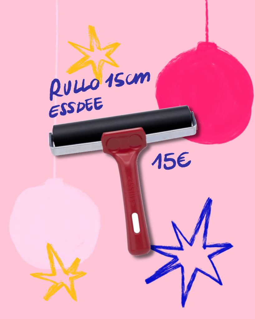 Per chi incide legno o linoleum un buon rullo (o anche 5) è sempre una buona idea. Meglio averne diversi per quando bisogna stampare più di un colore e meglio averne di dimensioni diverse a secondo della lastra.