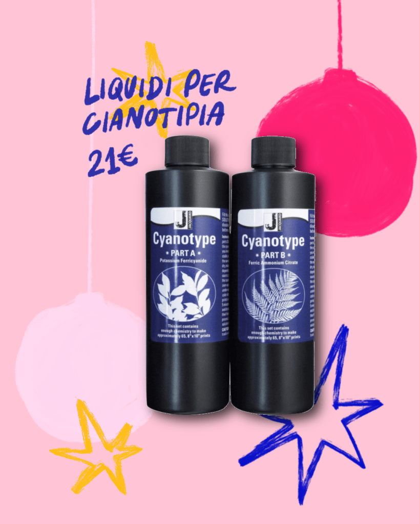 Per chi si sta appassionando o vorrebbe provare la cianotipia i liquidi per la stampa sono fondamentali. Quelli Jacquard sono facili da utilizzare e conservare e se volete curiosare tra altri materiali per questa tecnica qui trovate una lista completa.