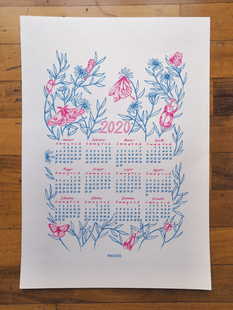 Ogni anno realizziamo un calendario, illustrato da una di noi e stampato in digitale, un oggetto che ci accompagni durante tutto l’anno